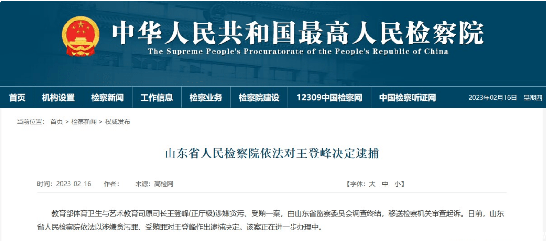 国内足球 时间:2023-02-17 12:58来源:编辑:燕归在如今,人们还以为需要在一段时间才会有中国足协相关的消息传出,没曾想,曾任中国足协副主席的王登峰在近日被山东有关部门带走调查,这是距中国足协主席陈戌源被带走调查后,又一大鱼落网,消息一出,广大球迷觉得很是正常,毕竟中国足球目前的情况只是冰山一角,还有更多的大鱼还未付出水面。