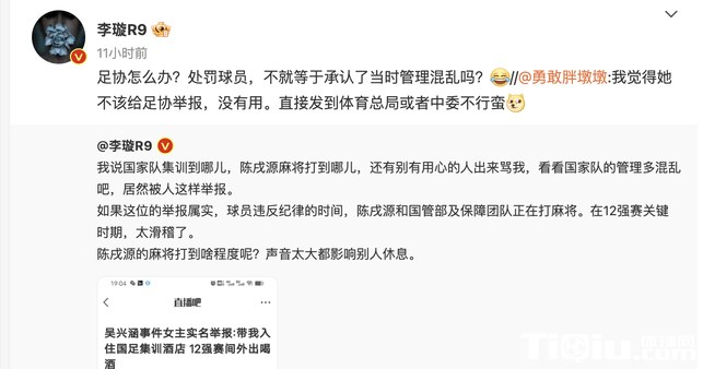 事情真假有待查询,从爆料内容来看,可以看出国足管理是有多么混乱,这就是国足所谓的100多人保障团队,纯粹就是为了陈戌源打麻将设置的。陈晨的举报有用吗?媒体人李璇表示一点没用,如果足协查询处罚吴兴涵了,那不是说自己管理无能吗?陈戌源打麻将吗?