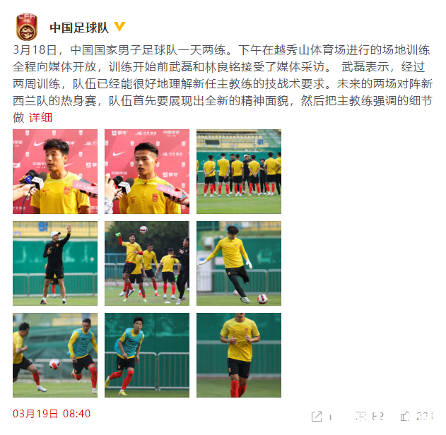 国内足球 时间:2023-03-21 16:12来源:编辑:燕归这段时间对于新国足来说,除了集训就是集训,而集训的结果就是要检验成果如何的,这不仅仅只是检验新国足主帅扬科维奇,也是检验邱国足的实力是否有所提升,而对于中国男足国家队的成员来说,已经太久没有经历一些好的赛事了,因此接下去的新西兰热身赛尤为重要。