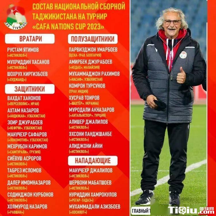国足亚洲杯对手阵容出炉 塔吉克斯坦公布集训名单