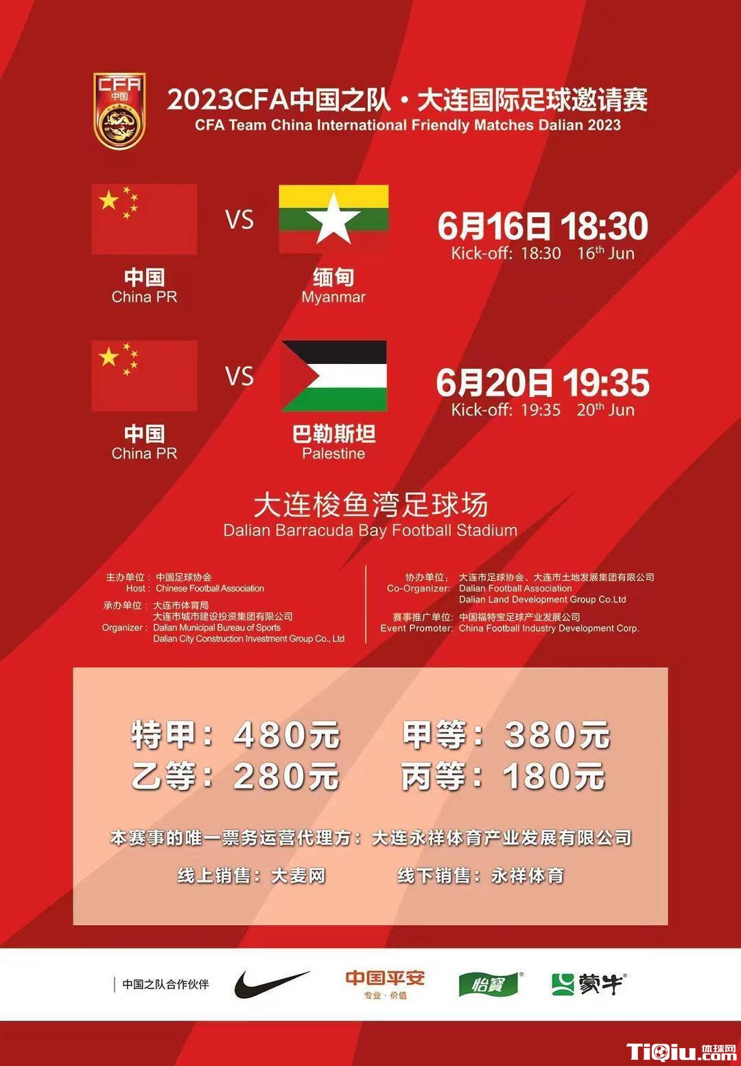 国内足球 时间:2023-05-30 16:40来源:编辑:燕归6月16日和6月20日,中国男足国家队将在大连梭鱼湾足球场先后迎战缅甸队、巴勒斯坦队,正式开启备战2023年卡塔尔亚洲杯和2026年美加墨世界杯亚洲区预选赛的序幕。5月30日,两场比赛门票正式面向球迷发售。这也是国足时隔两年后再次迎来国内的主场比赛,具有非常重要的意义。