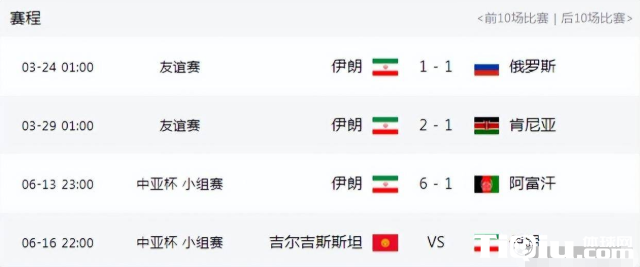 此后两队各进一球,最终伊朗将比分锁定在6-1,创造中亚杯开打以来的最大分差纪录。