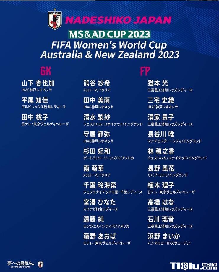 国内足球 时间:2023-06-14 16:18来源:编辑:燕归7月份即将举行的女足世界杯,这段期间是各支国家队公布相应参赛人员名单的时间,就在今天日本足协正式公布了出征2023年女足世界杯的23人大名单,其中有9名球员效力于海外联赛。日本队女足世界杯的首场比赛将是7月22日对阵赞比亚队,日本队本次的小组出线相对来说会轻松许多。