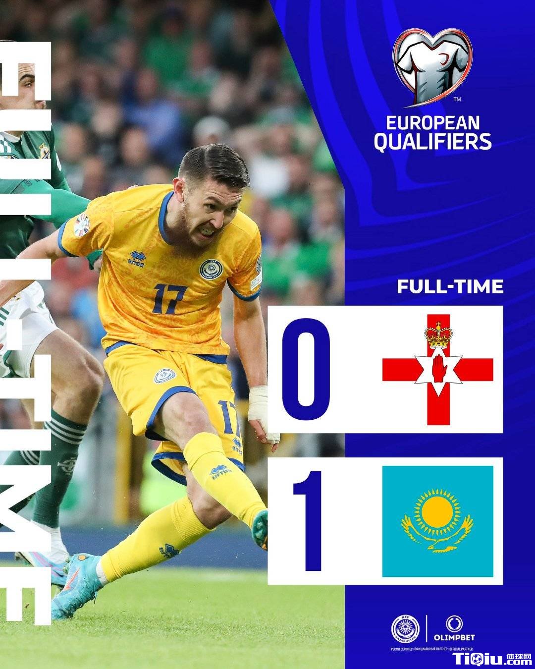 上半场比赛,哈萨克斯坦队依靠着顽强的防守,顶住了北爱尔兰队的猛攻。易边再战,场上的局势依旧胶着,面对哈萨克斯坦人摆出的铁桶阵,北爱尔兰队也显得办法不多,就当大家以为比赛将以0-0收场时,哈萨克斯坦替补登场的前锋艾姆贝托夫站了出来。第88分钟,艾姆贝托夫从后场开始带球高速突进,他一个人单挑了北爱尔兰整条后防线,在连续晃过两名北爱尔兰的防守球员后将球送入网窝,1-0!哈萨克斯坦队再度创造奇迹!继主场爆冷击败丹麦队后,他们又在客场掀翻了北爱尔兰队!