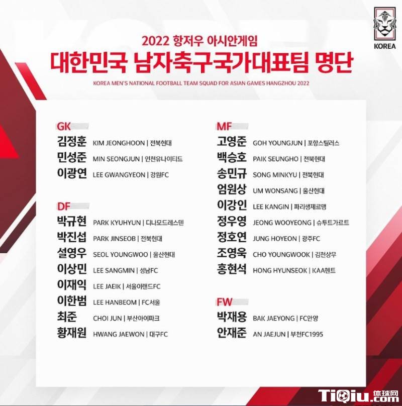 国内足球 时间:2023-07-15 16:53来源:编辑:燕归从七月份开始,全球各大赛事即将陆续开启,而且这些赛事的重要性都是不言而喻的,对于亚洲地区男足重要的赛事来说,无异于就是八月份要开启的杭州亚运会,而这个赛事的价值是非常大的,韩国男足公布了杭州亚运会22人大名单,李刚仁,郑优营领衔。