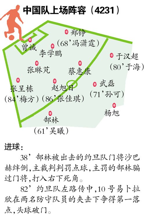 ¡¡¡¡ËäÈ»ÔÚ±ÈÈüÄ©¶Î±»Ô¼µ©¶Ó°âƽ£¬ËäÈ»·ÀÊØÎÊÌâÒÀÈ»Ã÷ÏÔ£¬µ«ÐÂÒ»ÆÚ¹ú×ãµÄ±íÏÖÓÈÆäÊǽø¹¥·½ÃæµÄ½ø²½£¬»¹ÊÇÈÃÈË¿´µ½Ã÷ÄêÑÇÖÞ±µÄÏ£Íû¡£×òÍí£¬Ãæ¶ÔÊÀ½çÅÅÃûλ¾ÓÑÇÖÞµÚ4µÄÔ¼µ©¶Ó£¬Öйú¶Óƾ½èÛ¬ÁÖ·£½øµãÇòÁìÏÈ£¬Ä©¶Î±»¶ÔÊÖ°âÆ½£¬×îºóÊÕ»ñÒ»³¡Æ½¾Ö¡£