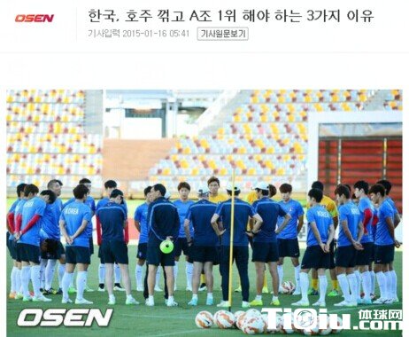 国内足球 时间:2015-01-16 15:57来源:未知编辑:浅月【导读】北京时间1月16日消息,已经取得小组赛出线资格,韩媒也开始对亚洲杯淘汰赛进行展望,由于中国队极有可能成为韩国队的对手,韩媒《NAVER》也是对中国队进行了重点关注,在该媒体看来,这支中国队已今非昔比,昔日球队的“自大症”已不复存在,更是列举了3大必须争第一避开中国队的理由,其中就有中国队所谓的“恐韩症”已经消失。
