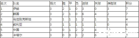 国足12强赛积分排名 亚洲区12强赛A组综述