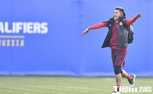 在经过了一天的休息调整后,队员们的状态和心情都不错,在准备活动中,他们做了传球游戏,没接住球的队员罚做俯卧撑。之后,在体能教练的带领下,队员们进行了跑圈、高抬腿跑、压腿等准备活动,队内气氛轻松,助理教练李铁也参与其中;守门员则在另一块场地进行抛接和扑球练习。