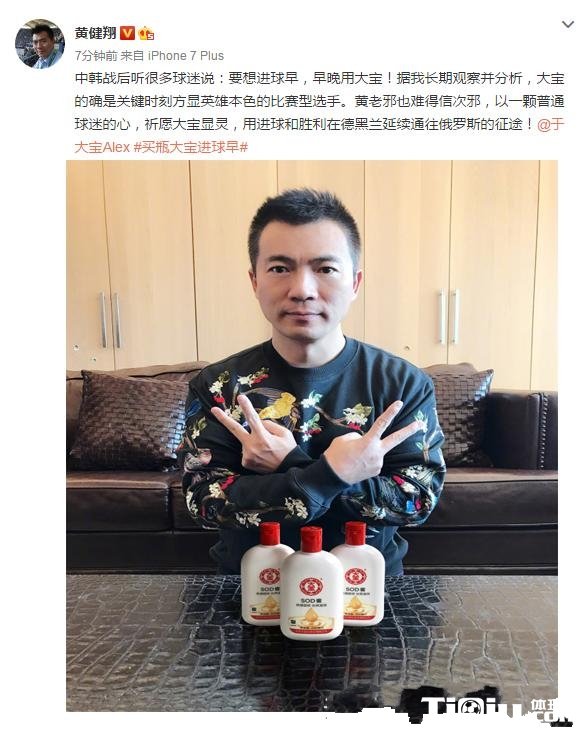 国足vs伊朗大战在即 黄健翔买3瓶大宝祝福国足