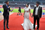 中约热身赛惊现婚礼现场北京时间9月9日,黑龙江哈尔滨,2014国际足球友谊赛,中国1-1约旦。在比赛中场休息的时候,哈尔滨会展中心出现温馨一幕,一对来自内蒙古的球迷夫妇在球场完婚,这也是国足比赛中首次出现球迷场内举行婚礼。 ...