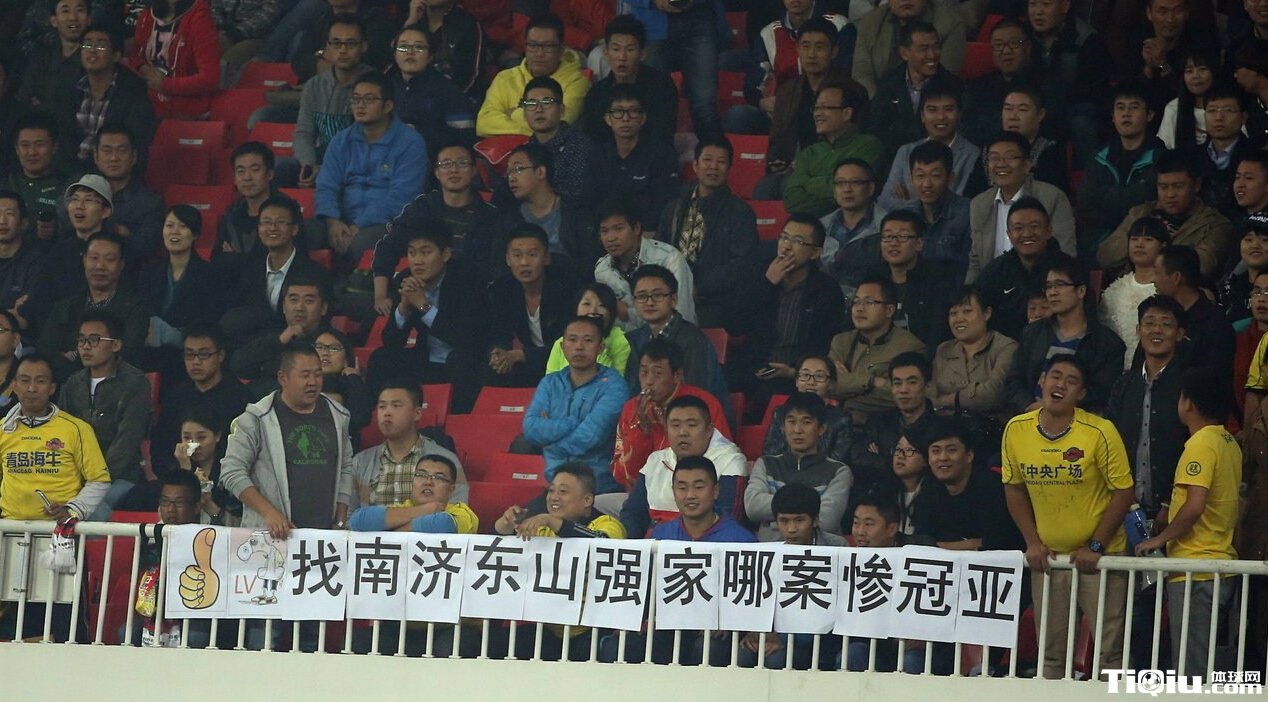 更是有球迷别出心裁的打出这样一幅标语“亚冠惨案哪家强,山东济南找鲁能”(球迷没有打出鲁能二字,而是用LV和一个大拇指的图标来代替)。众所周知,当下流行的一个广告语正是“学挖掘机哪家强,中国山东找蓝翔”,而蓝翔技校的所在地正是济南。考虑到鲁能的确是亚冠惨案专业户,青岛海牛球迷的讽刺可谓一阵见血。