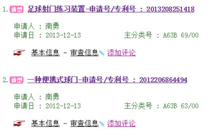 根据中国专利数据库的资料显示,南勇申请的“足球射门练习装置”能够精确地检测出进球位置并给出相应分数,从而能够提高足球射门练习的效果,还能够提高游戏的趣味性。另一项“便携式球门”专利,其球门各部件之间所采用的连接方式不仅组装容易、还可因地制宜地调整球门的高度及宽度。