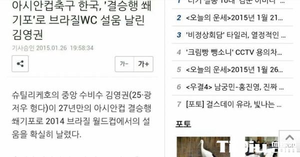 半年前的巴西世界杯上,金英权被人称为“逆贼”,成为最受人关注的球员之一。韩国队前主教练认为金英权防守能力出众,抢点能力强,而将其首发。但是这个选择最终以失败收场,面对阿尔及利亚的生死战,金英权面对速度快、体力优越的对手前锋毫无办法,露出大量空间,被球迷们称为“自动门”。