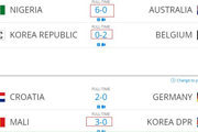 U17世界杯:韩朝澳0-11惨遭吊打 亚洲球队全军覆没【导读】北京时间10月30日上午,U17世界杯1/8决赛继续展开争夺,最终朝鲜队0-3完败给马里队,宣告进入16强的亚洲三队全部出局。昨天的比赛中,被寄予厚望的韩国队0-2不敌比利时,而澳大利亚更是遭尼日利亚6-0吊打。三场比赛,亚洲球队进0球丢11球,体现出了与欧洲、非洲强队不小的差距。 U17世界杯:韩朝澳0-11惨遭吊打 亚...