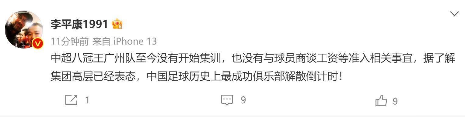 报道称,中超八冠王广州队至今没有开始集训,也没有与球员商谈工资等准入相关事宜,据了解集团高层已经表态,中国足球历史上最成功俱乐部解散倒计时!