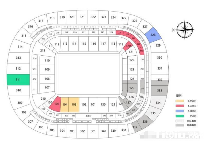 为了满足球迷的观赛需求,俱乐部研究决定增加开放103区(2000元档)、104区(2000元档)、105区(1500元档)、120区(1500元档)、225区至229区(1500元档)、328区(1200元档)、311区(950元档)供球迷选择,共计4808个座位。(票区图见图片)