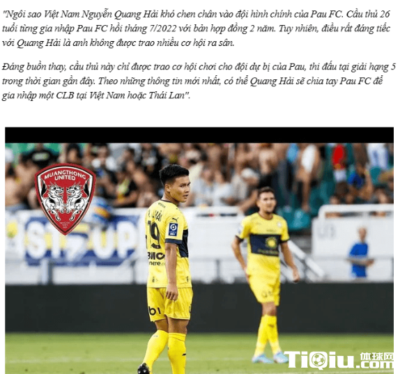 国内足球 时间:2023-04-24 13:48来源:编辑:燕归最近根据越南多家媒体报道,在法乙保级球队波城FC效力的阮光海,很可能回到亚洲踢球。包括泰超知名球队武里南、蒙通联在内的四支俱乐部,是其下家热门。无论他选择哪一家,大概率会在今年下半年的时间在亚冠比赛中遇到武汉三镇、山东泰山、浙江队。