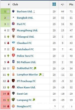 泰超联赛倒数第二轮比赛已经全部结束,积52分的泰港队排名第三,落后第二的曼谷联9分,领先第四的蒙通联5分,从而提前一轮锁定了季军的排名。