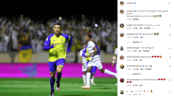 C罗写道:“全取三分,非常重要的一场比赛胜利,我们需要战斗到最后时刻”。显然C罗还是对冲击联赛冠军抱有很大的期望,而其实就算不拿到沙特联赛的冠军。C罗下赛季的亚冠参赛资格也稳了,因为在之前亚冠官方已经报道了,需要有着营业牌照的球队才能够参加亚冠比赛。利雅得青年人是没有办法参加亚冠联赛的。