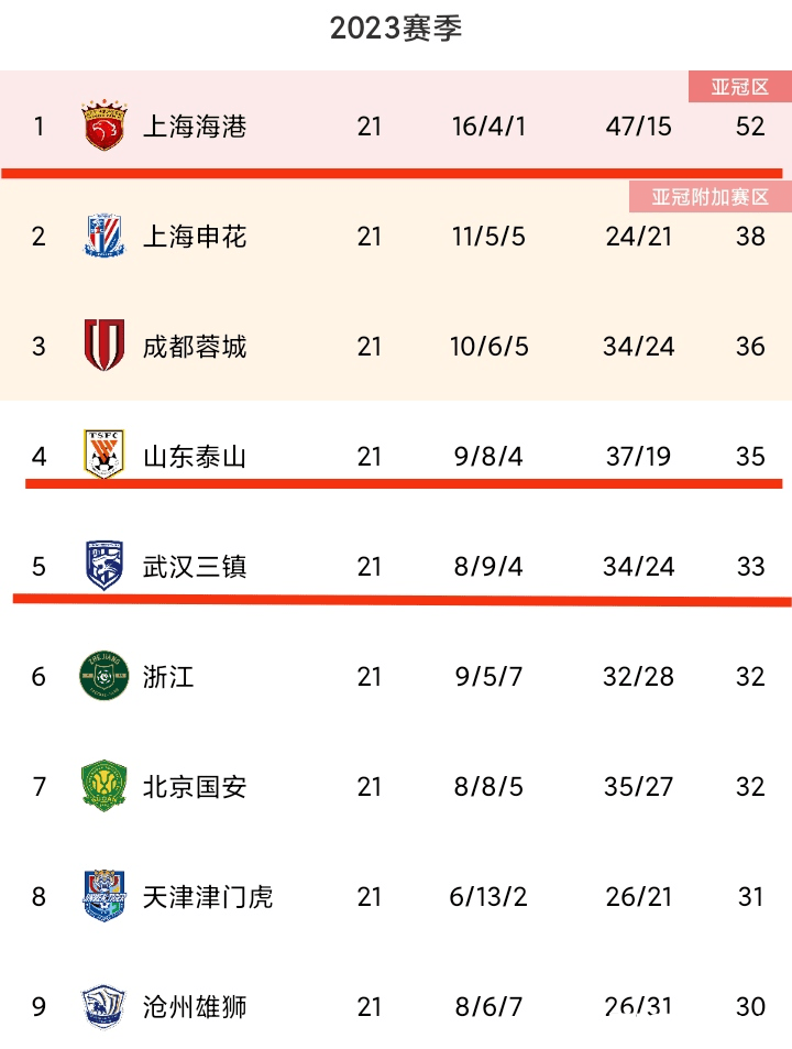 中超21轮过后,上海申花38分,成都蓉城36分,山东泰山35分,武汉三镇33分,浙江32分,北京国安32分,天津津门虎31分,沧州雄狮30分。可以看出来,第2名申花也就比第9名沧州多了8分,这也只是3场球的差距,8分并不是无法填补的空缺。这8队中任何1队掉下链子都可能会跌出亚军争夺集团,若努力下都有希望冲击下亚军。因此,第2名的争夺战会成为中超剩下比赛的看点。