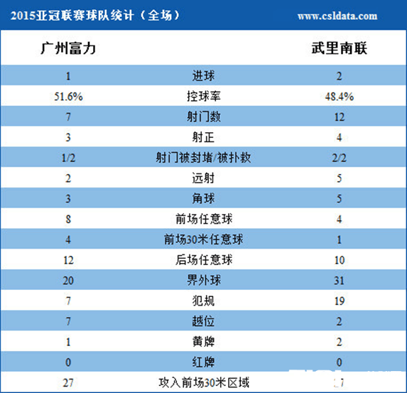 从数据来看,这是一场哪一方获胜都合理的比赛,武里南联的绝杀并不完全是因为运气。在主要进攻数据方面,富力均不占据上风,其中射门次数武里南联达到12次,而富力仅仅只有7次,射正次数双方倒是差距不大,但武里南联也以4-3超出。远射、角球次数方面,武里南联也均处于领先位置,这与富力本场比赛主打反击的战术也算吻合,但让人诧异的是,在控球率方面富力居然处于领先地位。