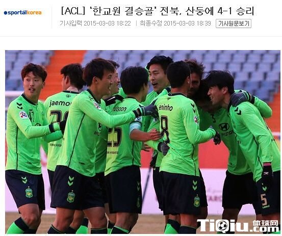 国内足球 时间:2015-03-04 11:09来源:未知编辑:浅月【导读】山东鲁能泰山队主场1-4不敌韩国全北现代队,这是亚俱杯改名为亚冠联赛后中国球队第二次在主场被对手4次破门,上一次发生在去年,山东鲁能2比4浦项制铁。赛后,韩国媒体将这场比赛形容为全北现代的一场伟大胜利,并就此开启了征服亚洲之路。