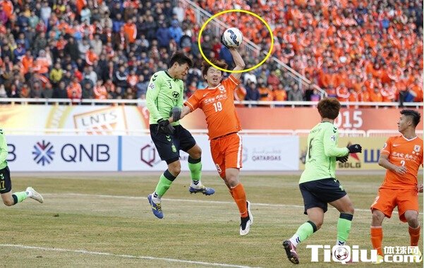 1-3落后,鲁能全队的阵脚已乱。比赛第79分钟,鲁能获得前场任意球机会,蒙蒂略罚出的皮球落点极佳,杨旭力压对方的球员将球“顶”在了门柱之上,乍一看像极了一次头球攻门。但通过慢镜头我们发现,杨旭情急之下是用他的左手将球拍向球门,动作非常的明显。这个犯规也引发了全北球员的抗议,当值的主裁判明察秋毫,出示第二张黄牌将杨旭罚下,而自知理亏的杨旭也没有做过多的争辩,闷着头悻悻下场。