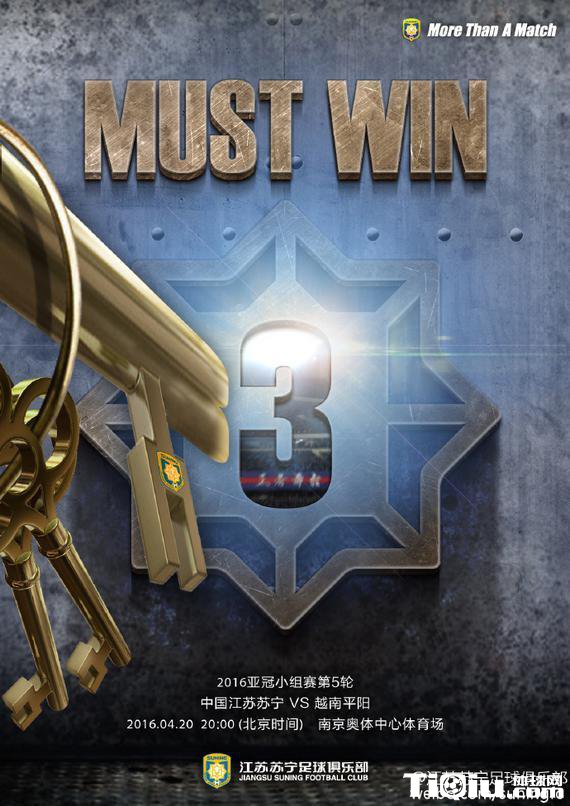 天苏宁将在亚冠联赛主场对阵越南平阳。今天球队发布了亚冠海报:胜利是唯一选项。小组赛前4轮过后,东京FC积7分领跑,全北现代积6分,苏宁积5分,越南平阳积4分。小组形势显得较为错综,这对于没有掌控争夺出线主动权的苏宁是一种利好,这也意味着苏宁剩余两战都要力求打好,主场对越南平阳必须全取三分!