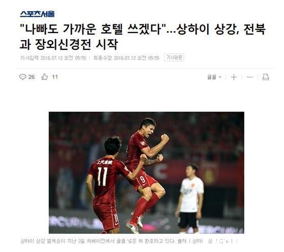 上港提前2月考察全北 中韩亚冠之战是非多