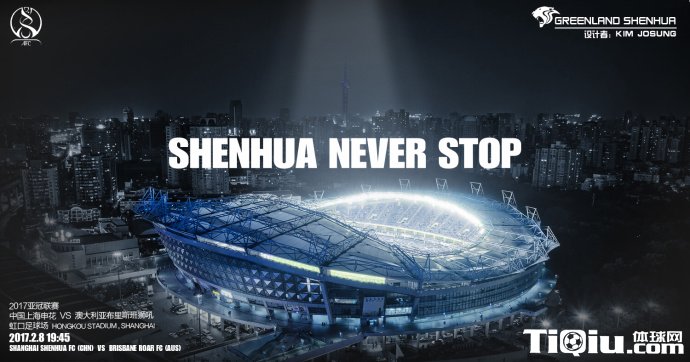 2月8日,上海申花将在亚冠资格赛中迎战澳超劲旅布里斯班狮吼,赛前,申花官方发布了主题为“SHENHUA NEVER STOP”的海报,期待在主场顺利晋级。