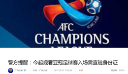 广州恒大vs香港东方 观看比赛将验证实名制北京时间2月22日消息,警察公布了即将开打的亚冠小组赛广州恒大对阵香港东方龙狮队的比赛在进场时各位球迷请携带身份证验证实名制入场,不准携带与比赛无关的物件,比如横幅助威物品等。...