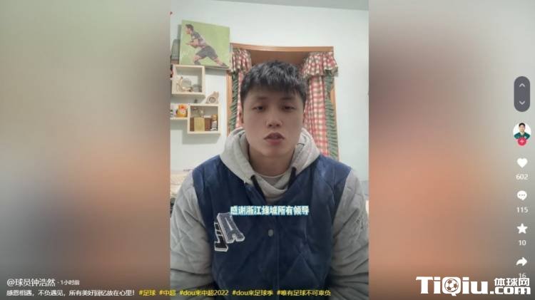 国内足球 时间:2023-03-01 11:01来源:编辑:雨后的微笑据最新消息来源,北京时间3月1日,最近,浙江队官宣钟浩然即将离开球队。随即钟浩然在个人社交平台上发表了最新视频动态,称自己的下一站新东家,得等到中超球队准入后才会知晓,但是并不排除留洋的选择。同时,他也不忘感谢浙江队领导、教练团、队友、以及球迷。