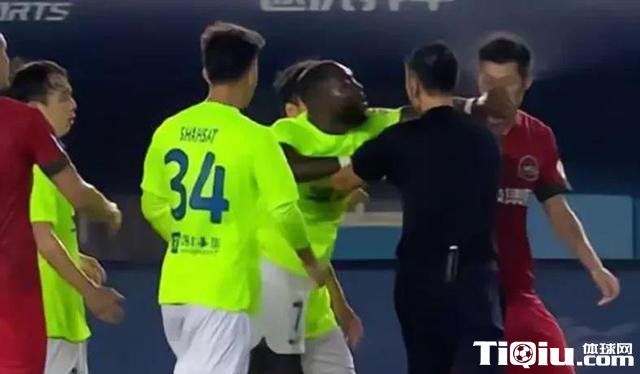 这是比赛进行到第34分钟时,当时阿奇姆彭和顾操有身体对抗,阿奇姆彭倒地,随后双方发生一些口角。主裁判很快将他们劝开,但在主裁判走开后,阿奇姆彭却突然情绪失控,冲过去直接一拳暴击顾操面部,连主裁判都拉不住。