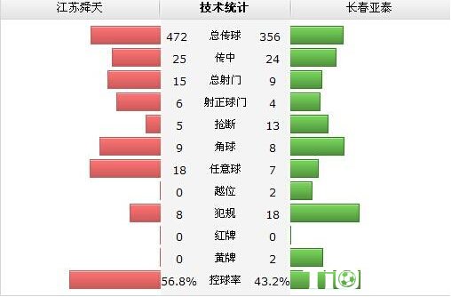 主队在比赛中显示出更胜一筹的技术能力——他们在大部分的技术统计上都占据上风:舜天控球率达到56.8%,总传球比亚泰多出116次(472次-356次),射门次数为15-9。但贝切莱改变了场上的局面,他全场3脚打门2脚破门,用惊人的效率带领球队从客场拿走关键3分。