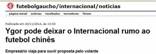 国内足球 时间:2014-11-21 16:46来源:未知编辑:浅月【导读】近年来,大批巴西籍外援涌现中超联赛,可谓蔚然成风。新赛季,这一股巴西风潮似乎还远没到冷却的时候,据巴西《FUTNET》网站透露,现效力于巴西国际的巴西后腰伊戈尔目前已收到来自中超联赛的转会邀请。在鲁能御用经纪人爱德华多·乌姆的运作下,伊戈尔前往中超踢球或许只是时间的问题。