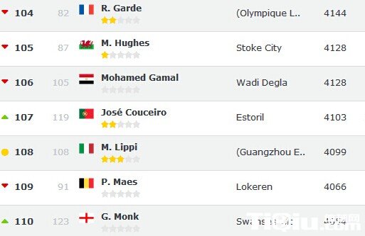 此项排名考虑中超、足协杯和亚冠等重要比赛在内,里皮的恒大在一年中表现差强人意,他虽然依然是中超排名位置最高的教练,但已离开前100的位置,本周排名止跌的意大利人稳居第108位,一年内排名下降了85位。受困于山东鲁能表现不佳,下滑势头凶猛的山东鲁能主帅库卡排名再次大幅下挫,目前仅位列第294位,比加盟鲁能时的世界第9下降了285位。