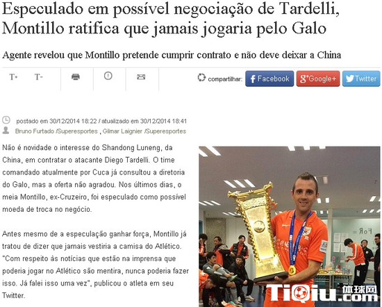 国内足球 时间:2014-12-31 15:33来源:未知编辑:浅月【导读】在中超结束后,山东鲁能外援蒙蒂略和多支南美球队传出过绯闻。不过蒙蒂略经纪人在接受巴西媒体采访时确认球员将会完成和鲁能的合同,这无疑给鲁能吃了一颗定心丸。