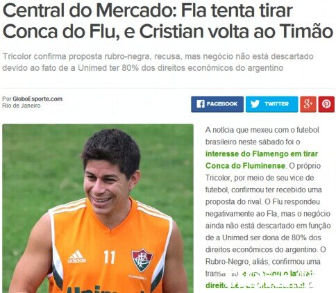 《环球体育》表示,克里斯蒂安去科林蒂安,弗拉门戈乘机追孔卡。这一连环交易对双方而言是双赢,科林蒂安得到了补强后退出孔卡争夺战,弗拉门戈则螳螂捕蝉黄雀在后,得到了孔卡。不过《兰斯体育》表示,在弗拉门戈官方求购孔卡后,弗鲁米嫩塞高层予以了回绝,甚至还要给孔卡涨薪,已应付不断的追求者。原因就是,弗鲁米嫩塞已慢慢通过谈判走出资金困境,他们肯定不想放球队核心离队。