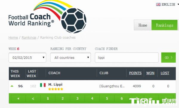 国内足球 时间:2015-02-03 10:33来源:未知编辑:浅月【导读】北京时间2月2日,荷兰足球教练统计学院(IFCStat)更新了最新一期世界俱乐部教练排名。由于刚刚夺得了马贝拉杯,虽然积分仍为4099,但排名较比上周却回升了六位,里皮也时隔六周后强势回归TOP100,位列世界教练排名第96位。除了里皮外,离TOP100最近的当属广州富力新帅孔特拉,他以3346个积分位列第146位,排名较比上周下滑两位。此外,带领国安在西班牙拉练的曼萨诺排名较比上周没有变化,依旧位列第173位。