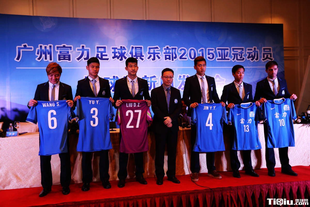 国内足球 时间:2015-02-04 16:55来源:未知编辑:浅月【导读】北京时间2月4日,广州富力在广州丽丝卡尔顿酒店召开2015亚冠动员暨球队新闻发布会。富力新帅孔特拉及休赛期引进的六名新援——汪嵩、于洋、刘殿座、叶楚贵、金洋洋以及外援米切尔悉数亮相。富力俱乐部副董事长陆毅,总经理章彬也出席了本次新闻发布会。