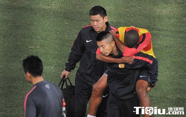 阿兰受伤被队医背出场外 眼含泪水表情痛苦
