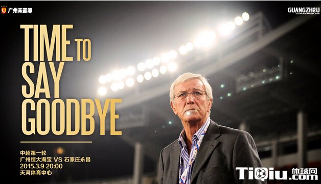 国内足球 时间:2015-03-06 14:11来源:未知编辑:浅月【导读】2015年3月6日,广州恒大官方宣布了新赛季联赛首轮对阵石家庄永昌的宣传海报来送别功勋主帅里皮:TIME TO SAY GOODBYE。