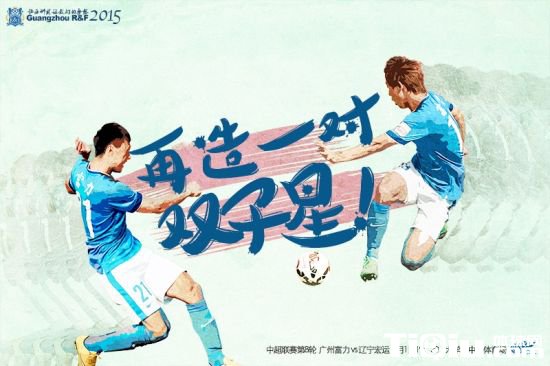 在上一轮联赛对阵长春亚泰的比赛中,两名93年龄段的小将叶楚贵和常飞亚表现不俗,分别攻入一球,帮助球队客场全取三分。而本轮回到主场迎战辽足,球队希望这两名小将能将火热的状态继续延续下去,本轮富力发布的迎战辽足的海报便正是以这两名小将为主角,并配上文字“再造一对双子星”,期望这两名年轻小将能成为富力自己的“于汉超&杨旭”。