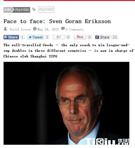 国内足球 时间:2015-05-25 11:24来源:未知编辑:浅月【导读】北京时间5月25日消息,上海上港主教练埃里克森近日在接受英国媒体《世界足球》杂志采访时表示在中国过得很开心,暂时没有重返英国执教的打算。在中国执教最大的挑战是难以找到优秀的本土球员。中国球员与欧洲球员水平越来越接近,其中有些人肯定有能力在英冠、德乙这样的欧洲联赛踢球。中国球员在身体素质和战术执行上不是很好,往往错过了非常重要的成长期。中国足球蓬勃发展的主要原因在于巨额资金的投入以及中国国家主席的支持。
