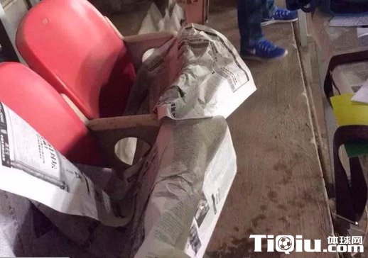 而汪涌还在文章中称:无论是桌子和椅子,基本上都布满尘土,不少桌子上污渍斑斑。前来采访的记者们来到媒体席做的第一件事,就是拿出随身携带的报纸,将桌椅小心覆盖后才能入座。新华社记者从自己所坐的位置一直走到最后一排俯视下去,整个记者席上密布的报纸成为一道怪异的“风景”。前来采访的韩国记者由于“缺乏经验”,不得不临时找中国同行索要报纸,铺上后才能架上电脑和摄像设备进行工作。中场休息时,记者绕到相近一些球迷看台观察,坐席肮脏程度同媒体看台基本相似。
