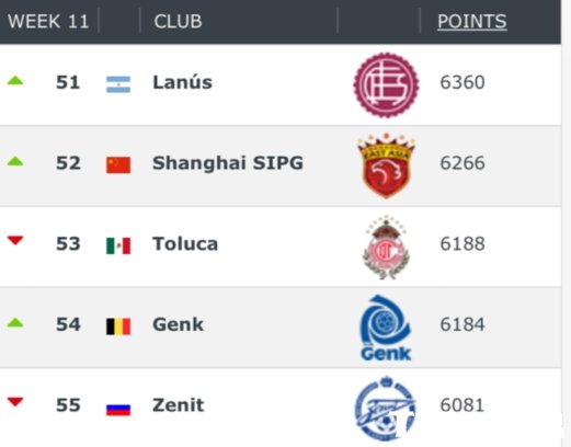 。FC首尔排名世界第10位,排名高于多特蒙德、巴黎圣日尔曼、曼城等欧洲豪门。广州恒大的亚冠同组对手水原三星位居世界第47位,在亚洲俱乐部中排名第3位。本期没有中国俱乐部进入世界前50位。上海上港的最新积分是6266分,排名世界第52位,较上期提升19位,排在泽尼特等俱乐部之前。