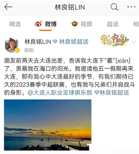 国内足球 时间:2023-03-13 20:21来源:编辑:燕归对于大连人的传闻可以说是很多,各种内幕满天飞,而且各种离队的消息不断,尤其是林良铭的消息可以说是层出不穷,而如今,这些媒体人都会各种打脸了,林良铭特意发文打破离队的传闻,并且发表文章表达对大连人的喜爱,名副其实的表忠心行为。