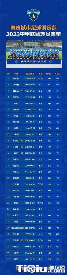 新赛季中甲联赛将在4月22日开幕,今日南京城市通过官博公布了新赛季球队征战中甲联赛的大名单,梅西-保利、马西卡、傅欢、聂傲双、中国台北球员殷亚吉、新外援杰弗森等在内。