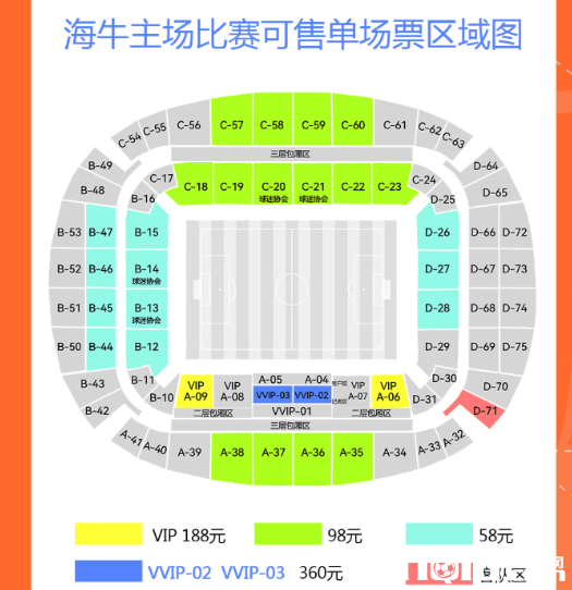 根据青岛海牛刚发布的公告,这场比赛的球票分为4个档次,票价分别是:360元、188元、98元、58元。球迷可在4月29日18:00之前进行网上购票,也可在4月28日10:30-17:30,4月29日10:30-18:30,在青春足球场(城阳区靖城路1号)售票点线下购票。